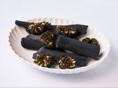 Креветки, приготовленные в дровяной печи до золотистой корочки, пропитаны соусом унаги. Подаются с морской капустой, посыпанной кунжутом. Блюдо Креветки, забытые в печи сочетает в себе пикантность и лёгкую сладость